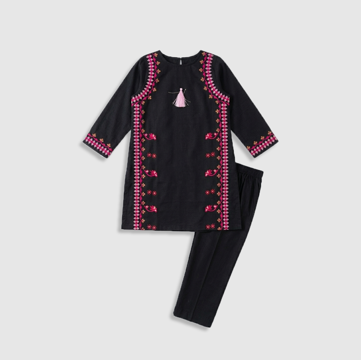 Add a touch of tradition and elegance to your girl’s wardrobe with this beautiful eastern wear outfit. Designed with soft, breathable fabric, it ensures all-day comfort while maintaining a graceful and stylish look. The charming design and delicate detailing make it perfect for family gatherings, festive occasions, and special events.