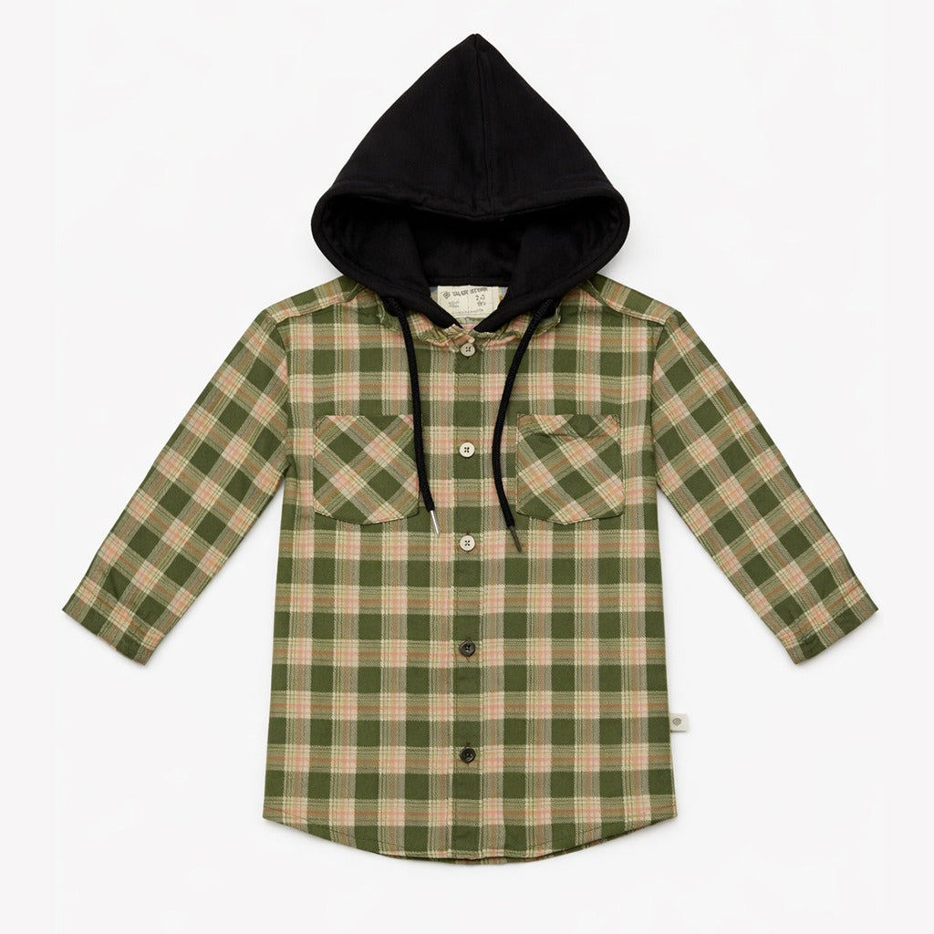 Green Check Hooded Shirt
